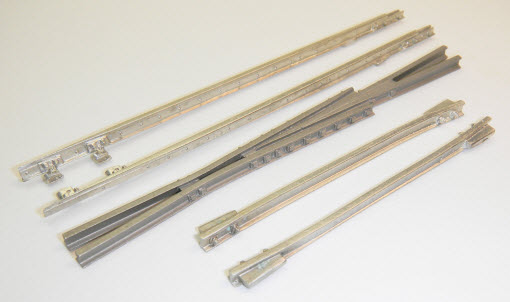 Great looking trackwork enhances the models operating on it to the degree that it is an important factor in any layout. In finescale modeling, accurate and well detailed trackwork is as important as the wheels running on it. Five different rails are available to the O scale modeler. Code 148, which is 131 to 136 pound per yard rail measuring 7-1/8 inches in height has been used extensively with the O Scale crowd. That size rail came into use in the early 1930?s primarily on some Eastern Class I railroads. However, due to supply constraints as a result of WWII, a lot of Class 1 railroads ran on 100 pound rail laid during the 1930?s which measured between 5-13/16? to 6? in height. This is close to Code 125. Some notable exceptions were the Pennsylvania, Nickel Plate (NYC), and the Southern Pacific/Union Pacific which used 112-130 pound rail averaging 6-1/2? in height, or Code 138, in their mainline trackage; the difference being the thickness of the web which resulted in the weight variation. During the pre-war period and up through the 1970?s, much of the branch line rail used throughout the US and Canada was 75 pound, 4-3/4? high rail - or Code 100. Much of this ended up in yards after being removed for upgrading right of ways for heavier tonnage usage. And finally, Code 83, or 52 pound, 3-13/16? high rail was used extensively for the narrow gauge railroads all over North America. And if it was laying around as excess or used rails, it found itself being reused in sidings and loading spurs on standard gauge railroads.